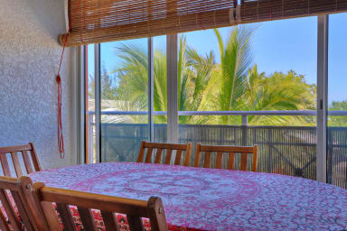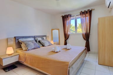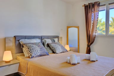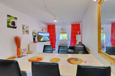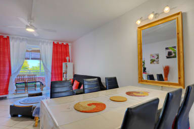 Découvrez La Madrague, un T3 de charme à 30s du lagon de Trou d'Eau. L'emplacement idéal pour alterner entre activités nautiques (snorkeling, paddle) et retour de randonnées sur l'Île Intense. Profitez des bars de plage et restos à pied, puis savourez le coucher de soleil sur le sable. Un refuge parfait entre aventure et farniente à La Saline.